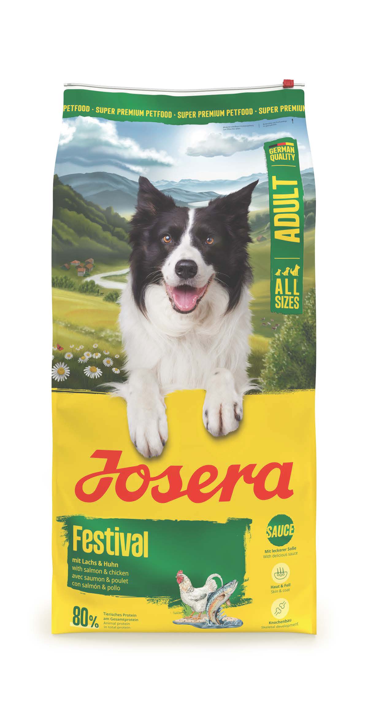 FESTIVAL Mit schmackhafter Soße für wählerische Hunde Das einzigartige Menü für unsere anspruchsvollen Genießer: Dieses Futter kann sowohl trocken, als auch nass gefüttert werden. Durch das integrierte Soßenpulver und die Zugabe von Wasser verwandeln sich die knusprigen Kroketten in ein ganz besonderes Geschmackserlebnis! Diese Abwechslung wird auch unsere wählerischsten Lieblinge überzeugen.