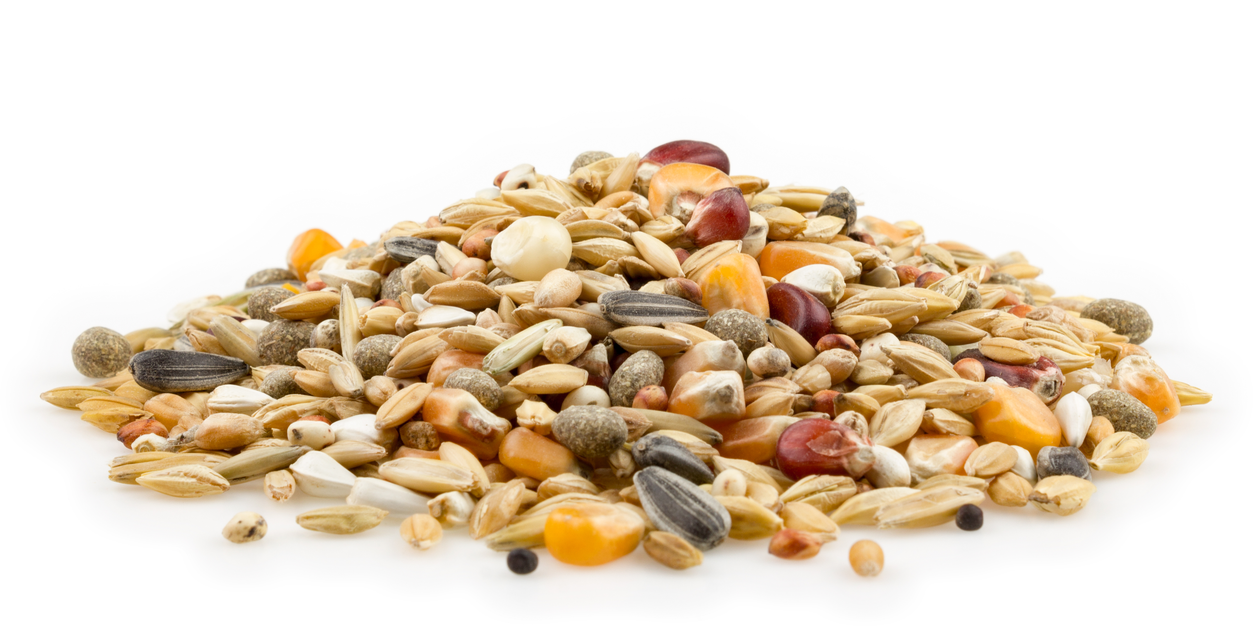 Gestutzte Gerste 20 %, Paddyreis 17 %, Milo 12 %, Perlmais 11 %, Hafer 9 %, Vollkraft Perle 8 %, Weizen 7 %, Dari 4 %, Kardi 3 %, Sonnenblumenkerne 3 %, Top Mais 2 %, Rotmais 1 %, Rapssaat 1 %, Hanfsaat 1 %, Leinsaat 1 %.