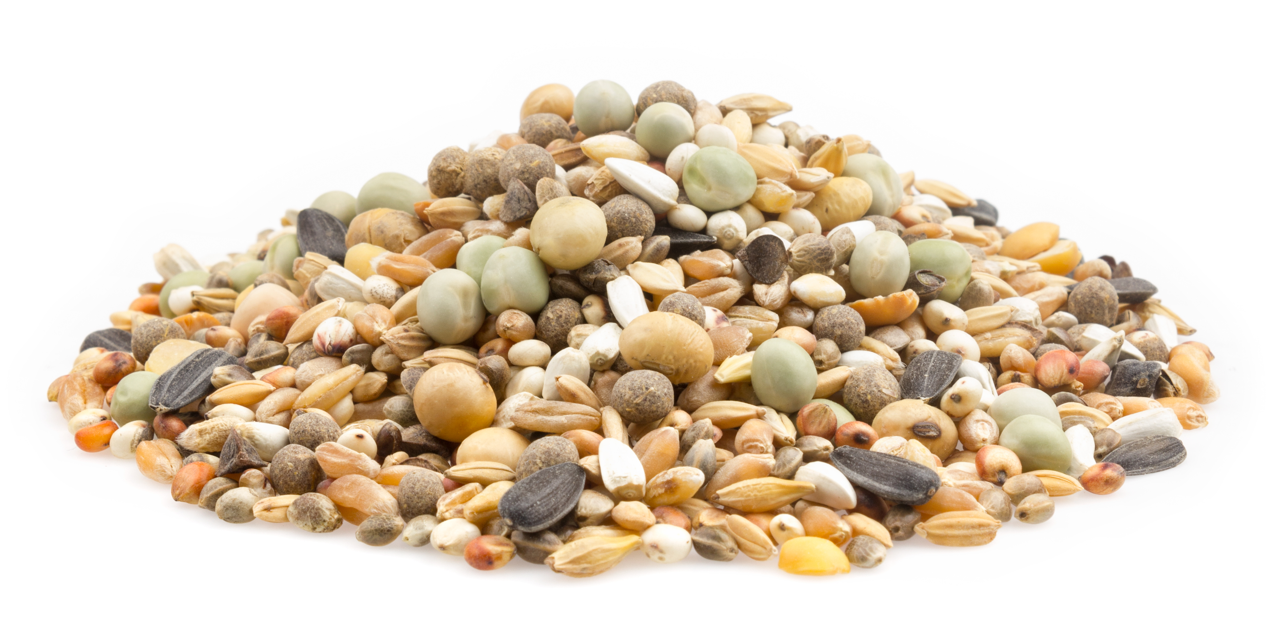 Dari 22 %, Weizen 20 %, kleine grüne Erbsen 11 %, Paddyreis 7 %, getoastete Sojabohnen 7 %, Haferkerne 6 %, Vital Perle 5 %, geschälte Gerste 5 %, gestutzte Gerste 5 %, Hanfsaat 4 %, Kardisaat 4 %, Buchweizen 2 %, Sonnenblumenkerne 2 %