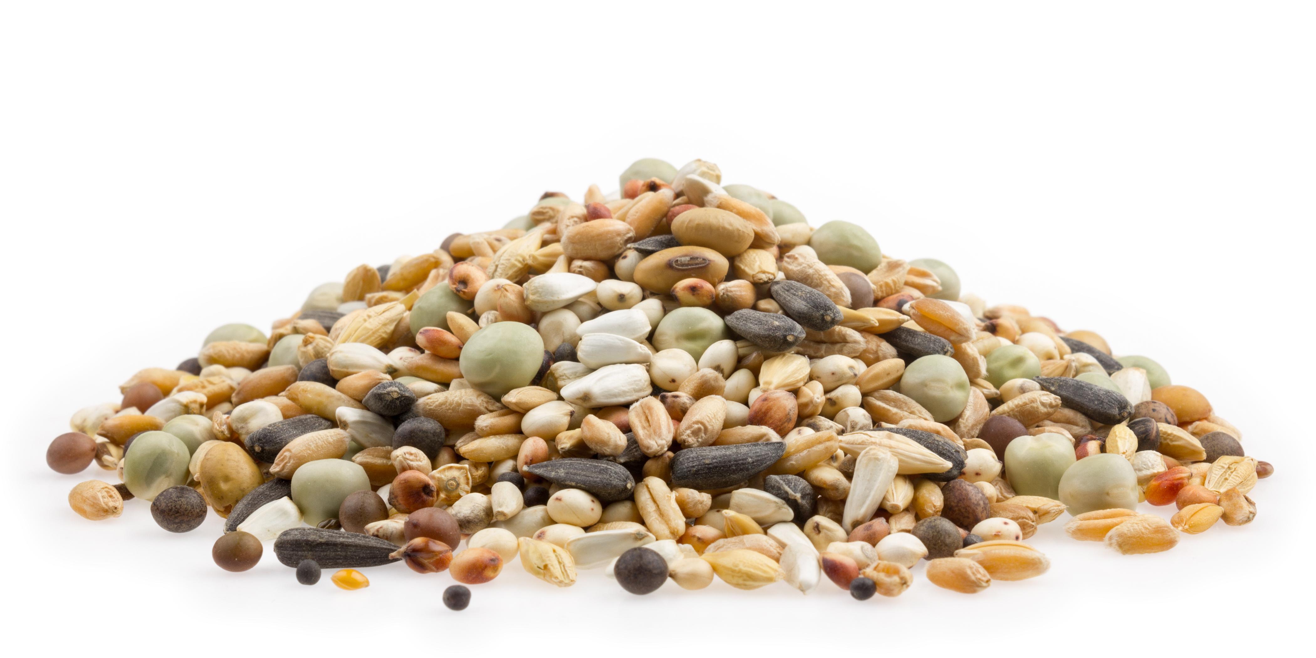 Weizen 18 %, Dari 16 %, kleine grüne Erbsen 15 %, Milo 14 %, Wicken 8 %, Kardisaat 7 %, Haferkerne 6%, Paddyreis 5 %, gestutzte Gerste 4 %, Hirse 2 %, getoastete Sojabohne 2 %, Sonnenblumenkerne 1 %, Leinsamen 1 %, Rapssaat 1 %