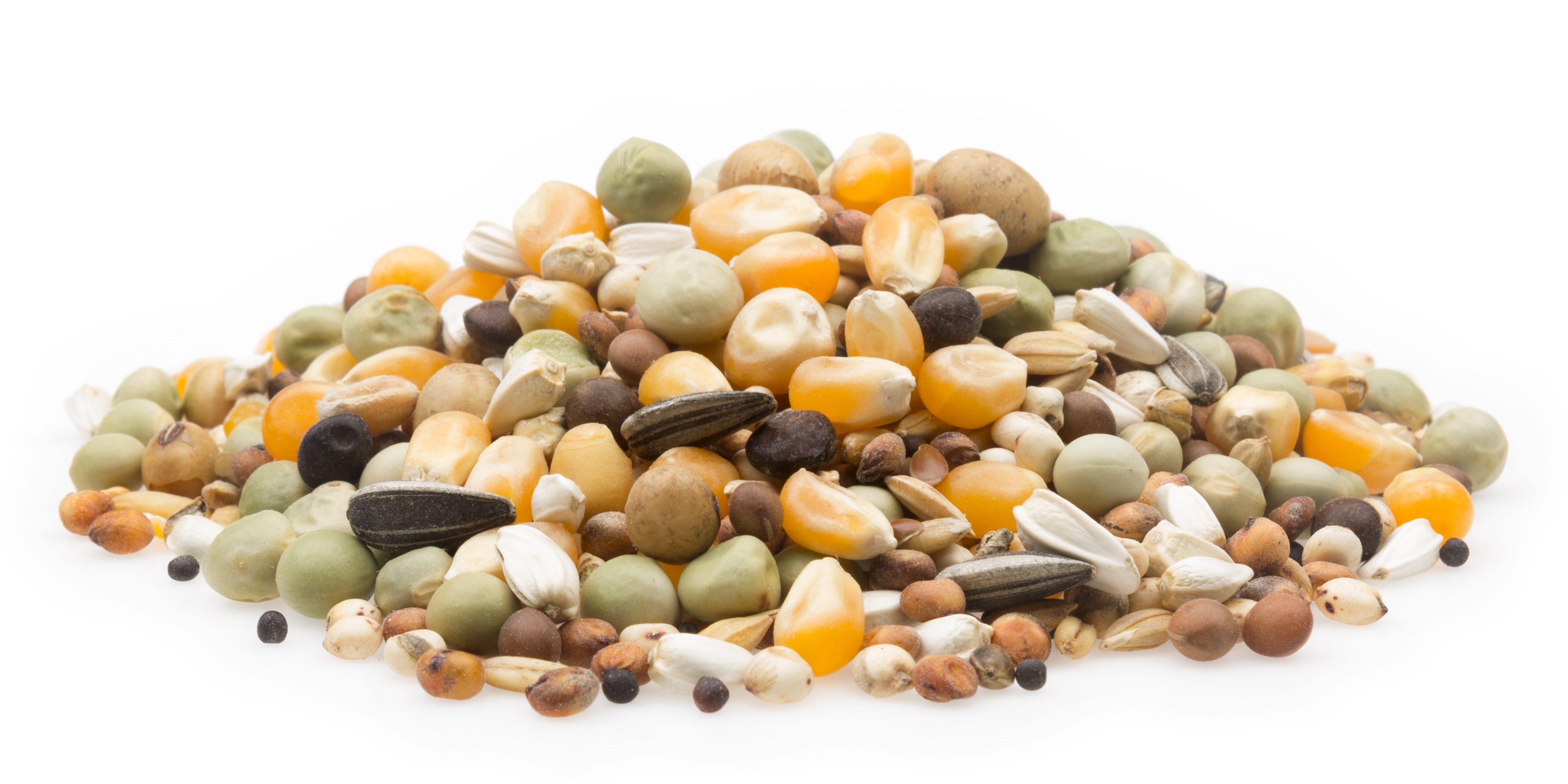 Perlmais 25 %, kleine grüne Erbsen 17 %, Milo 15 %, Dari 13 %, Haferkerne 6 %, Paddyreis 5 %, Sämereien 5 %, Kardisaat 5 %, Wicken 4 %, getoastete Sojabohnen 3 %, Sonnenblumenkerne 2 %.