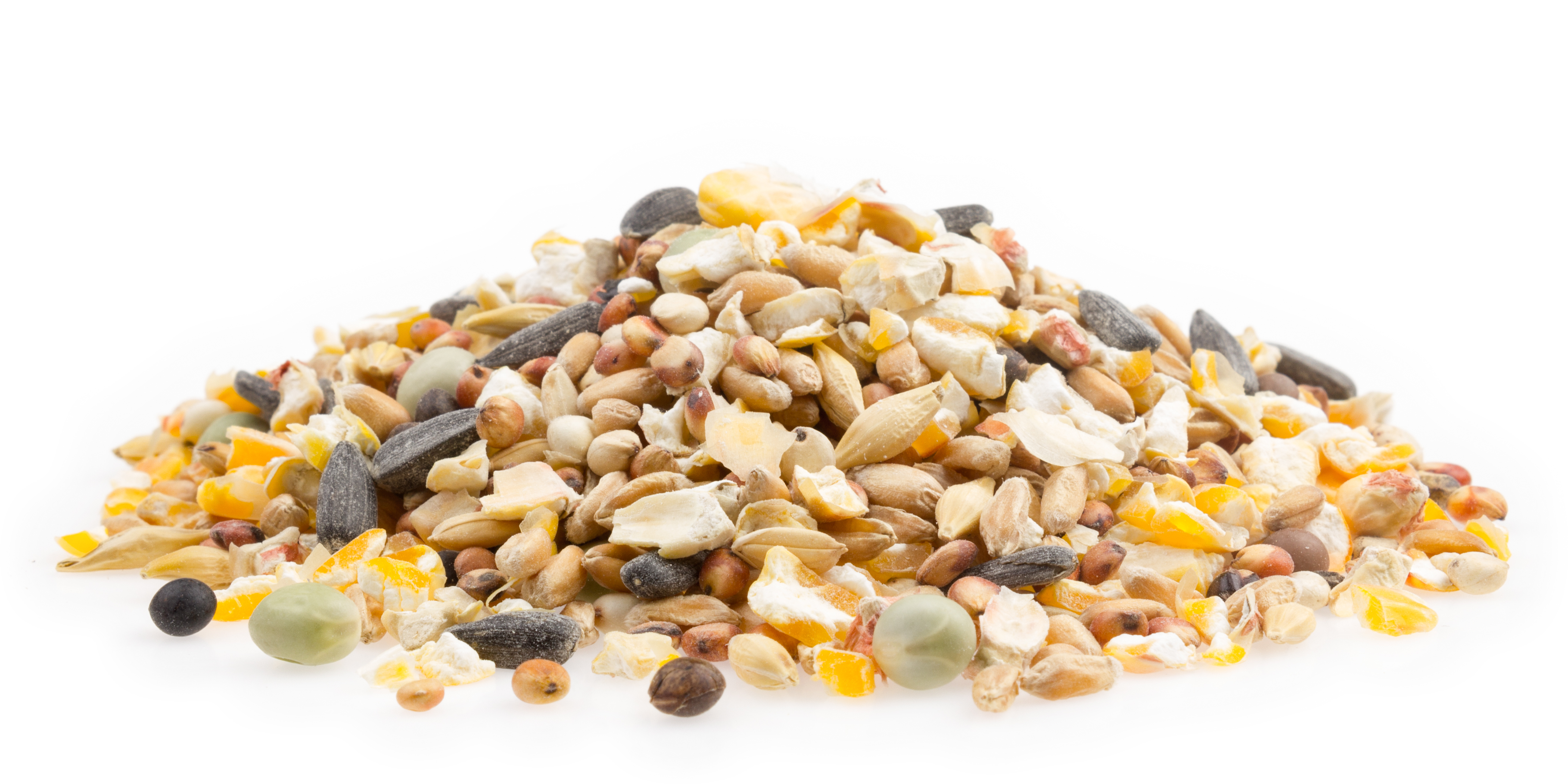 Milo 29 %, Weizen 28 %, gebrochener Mais 18 %, kleine Erbsen 8 %, Wicken 4 %, Dari 4 %, gestutzte Gerste 4 %, Paddyreis 3 %, schwarze, Sonnenblumenkerne 2 %